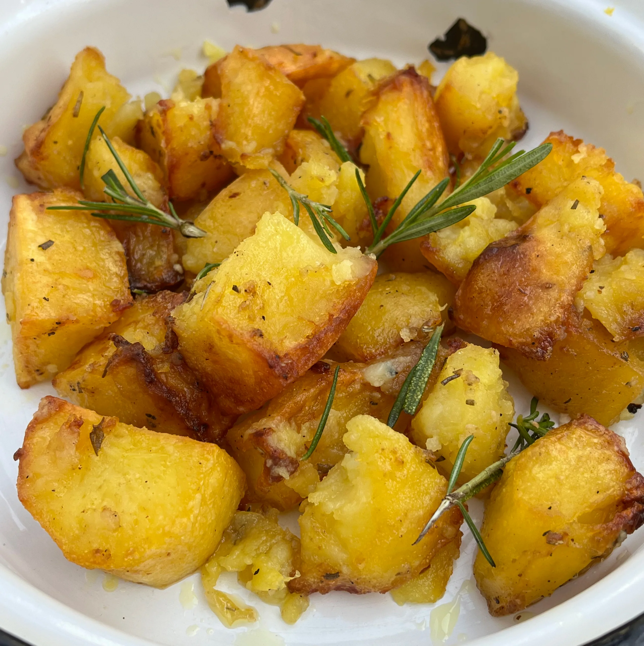 Las patatas al horno son un acompañamiento clásico para segundos platos de carne y pescado. Deliciosas, suaves por dentro pero cubiertas de una rica corteza colorida, estas patatas perfumadas con ajo y romero son perfectas para el almuerzo y la cena en cualquier ocasión.