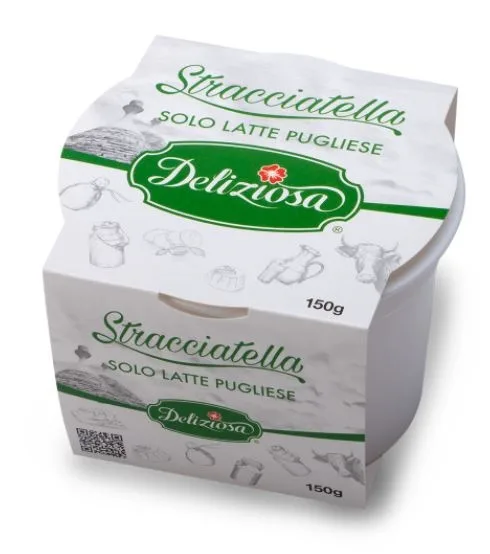 Stracciatella es blanca de leche y se presenta en contenido fibroso. Tiene un sabor suave que no es muy ácido. Al igual que la burrata que dominaría su consistencia interna, la Stracciatella apuliana está compuesta por crema fresca y un desfile de pasta archivado que generalmente se produce manualmente garantiza su calidad y artesanía.